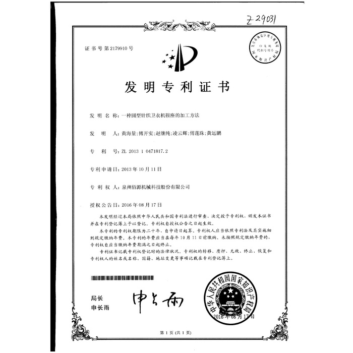 06發(fā)明-一種圓型針織衛(wèi)衣機鞍座的加工方法